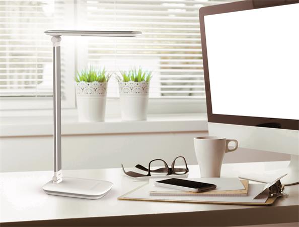 Kompakt, állítható fényerejű LED-lámpa. Galvanizált alumínium karok, stabil acél oszlop nehezékként szolgáló súlybetéttel. Extra takarékos, 80%-kal kevesebb energiaszükséglet az izzókhoz képest, emellett helytakarékos és könnyen kezelhető. 5 fokozatú fényszabályozó a lámpa alján található érintési felülettel. Biztonságos és környezetbarát, újrahasznosítható csomagolás.