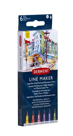Tűfilc készlet, 0,3 mm, DERWENT "Line Marker", 6 különböző szín