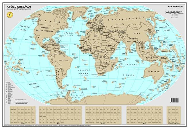 KezdőlapTechnológiaPrezentációFalitérképekKaparós Világtérkép, 84x57 cm, STIEFEL, A Föld országai, arany bevonat